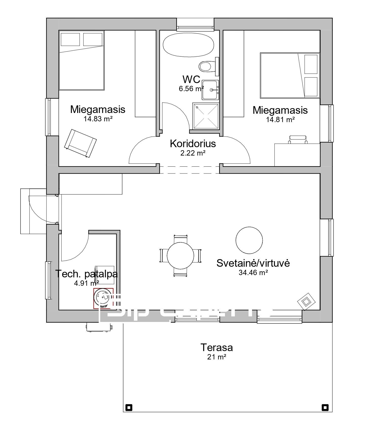 Technical room – 4.91 m²;